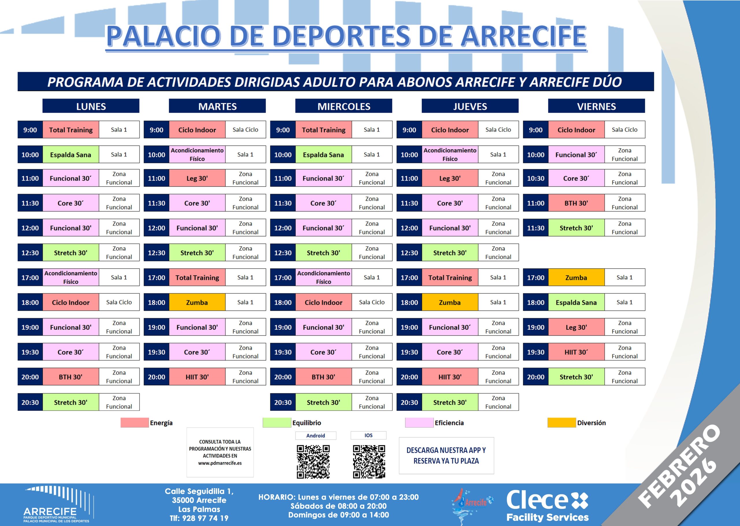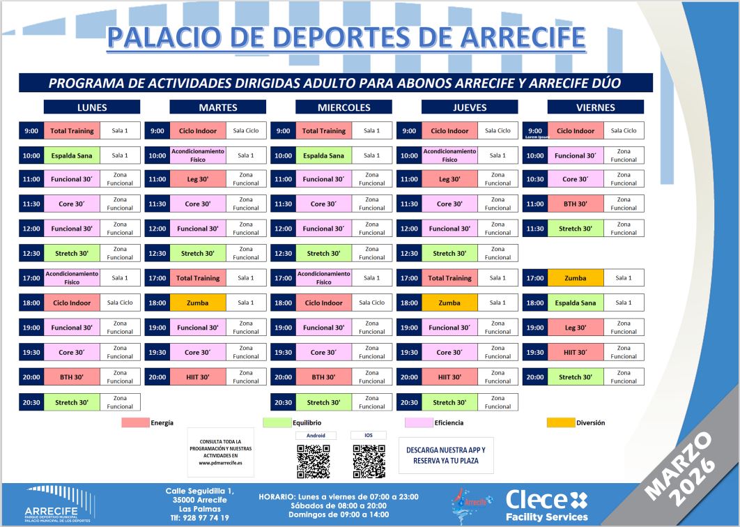 HORARIO ACTIVIDADES ADULTOS – PALACIO DE DEPORTES