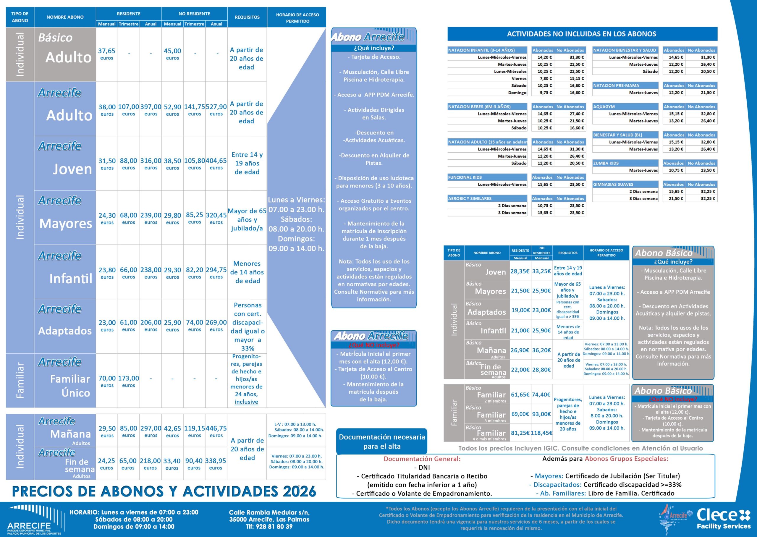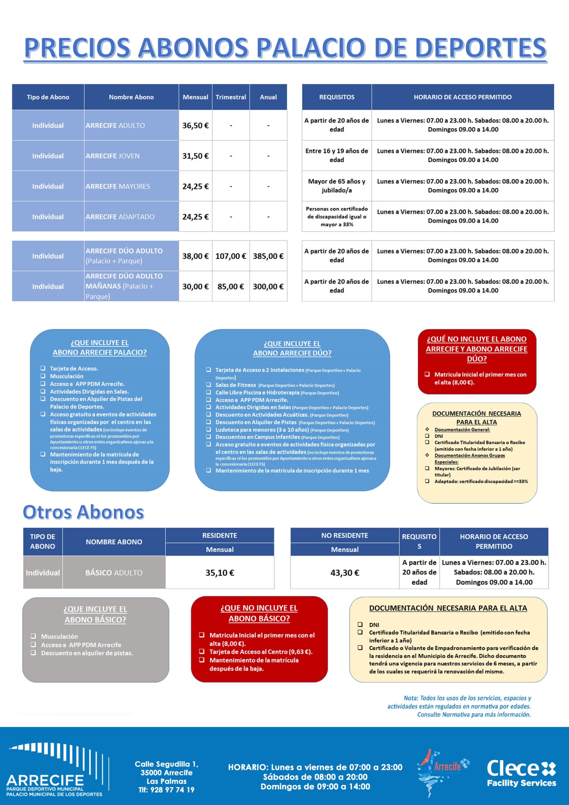 PRECIOS – Palacio Deportes Municipal
